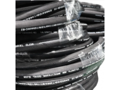 高压钢丝缠绕胶管结构主要由内胶层、中胶层、四层或多层交替缠绕的钢丝增强层和外胶层组成。内胶层具有使输送介质承受压力,保护钢丝不受侵蚀的作用,外胶层保护钢丝不受损伤,钢丝(ф0.3-2.0增强层)层是骨架材料起增强作用。高压钢丝缠绕油管(高压油管)